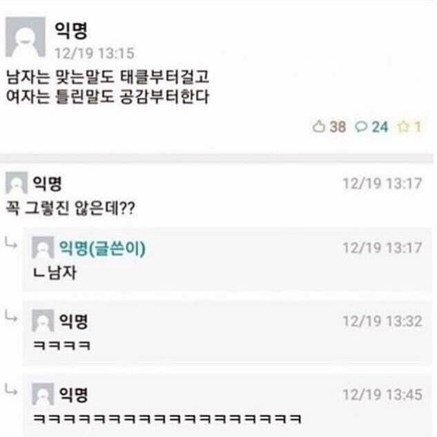 남자와 여자의 차이, 남자 여자 공감차이, 대화법 특징, 말 잘하는 방법, 남자는 맞는말도 태클부터 걸고 여자는 틀린말도 공감부터 한다. 에브리타임, 에타 레전드, 웃긴에타